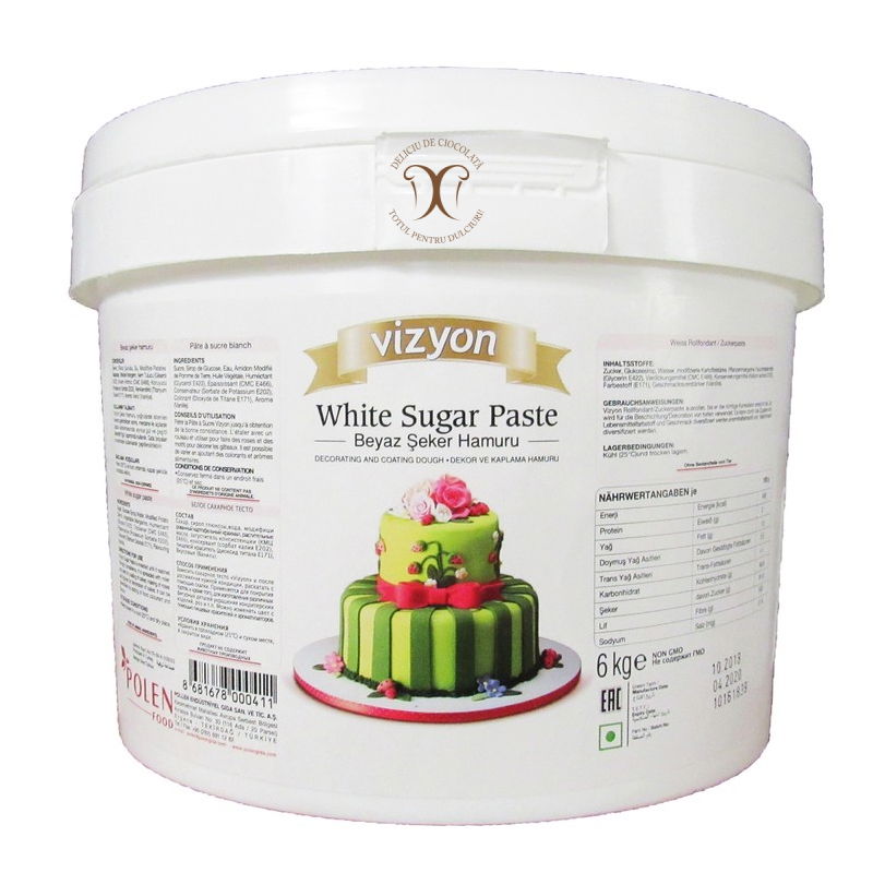 Pasta de zahar de culoare alba de la Vizyon este un fondant pentru decorarea si acoperirea torturilor si prajiturilor.
