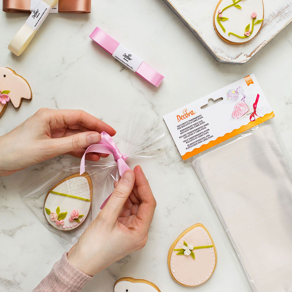 Pachet cu 50 de pungute din celofan transparent pentru ambalare.