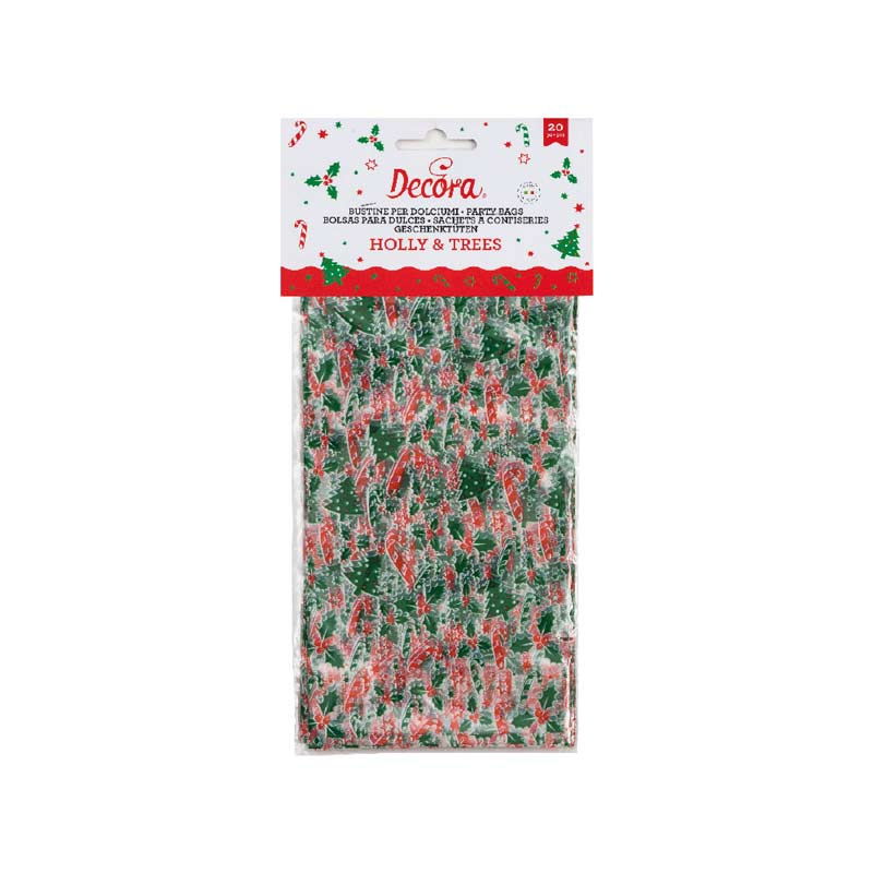 Pungute din celofan, imprimate cu model Craciun, ideale pentru o ambalare / prezentare eleganta si igienica a produselor mici de cofetarie.