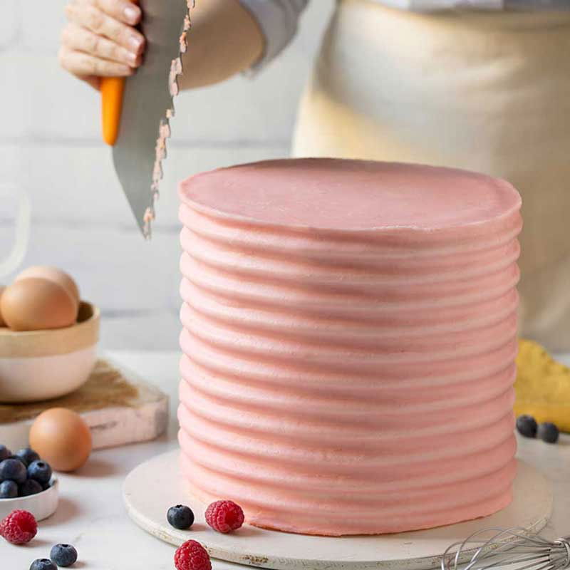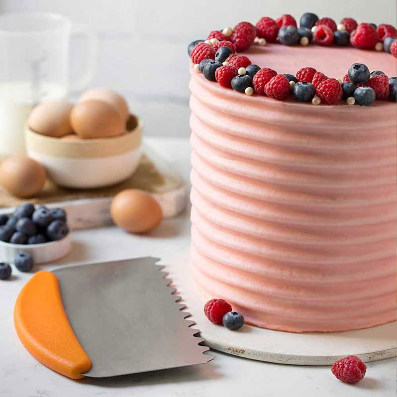 Racleta din inox cu maner din plastic pentru nivelarea torturilor si a prajiturilor.