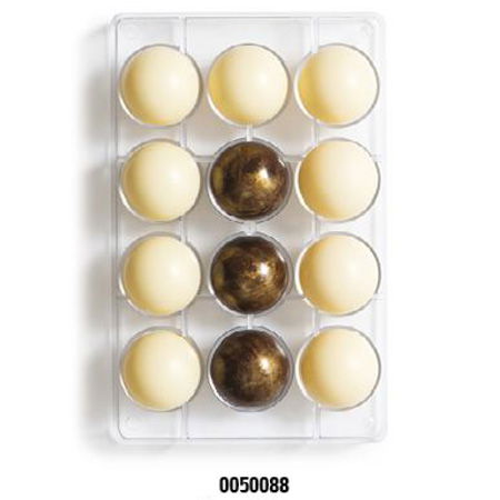 Matrita din policarbonat, pentru realizarea semisferelor din ciocolata.