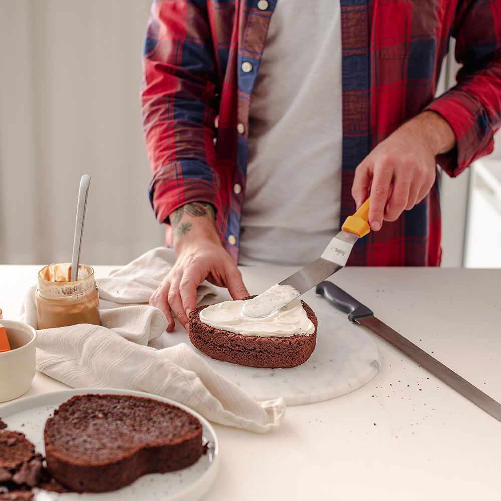 Spatula unghiulara este potrivita pentru mutarea prajiturilor si intinderea cremelor si a ciocolatei de-a lungul marginilor. Forma unghiulara va permite sa evitati contactul mainilor cu suprafata de decorat.