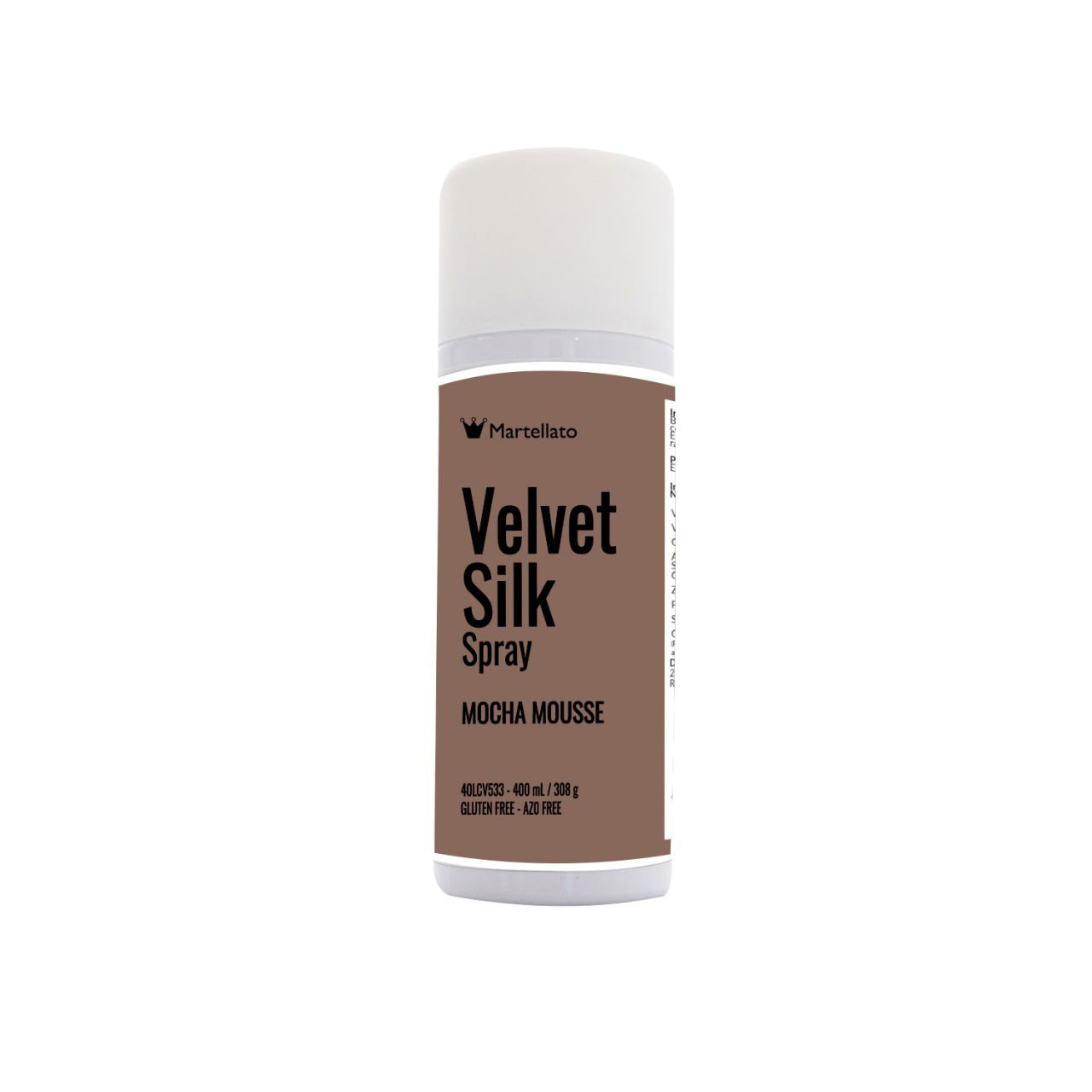 Colorant Alimentar, Spray Velvet Silk fara E171, pe baza de ulei, care face suprafața decorată mai sofisticată, menținând intensitatea culorilor.