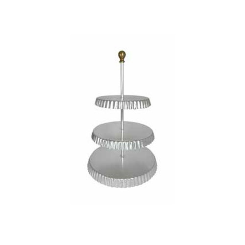 Suportul din Aluminiu si Bronz, cu 3 platouri rotunde cu margini festonate orientate in jos, dispuse pe 3 etaje, este perfect pentru expunerea și prezentarea produselor de mici dimensiuni în cadrul bufeturilor de tip Candy Bar sau în restaurante.